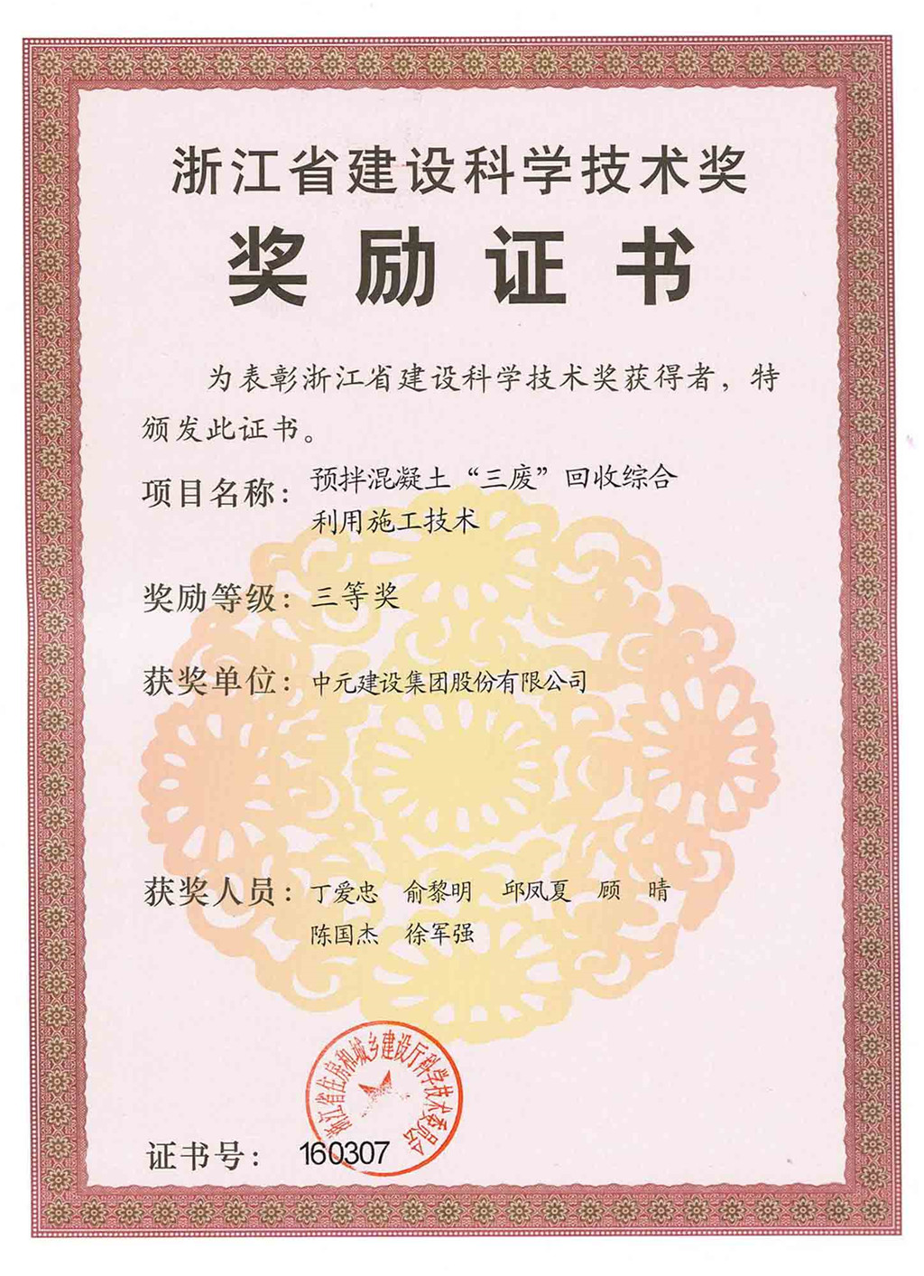 2017年浙江省建设科学技术奖(三等奖)