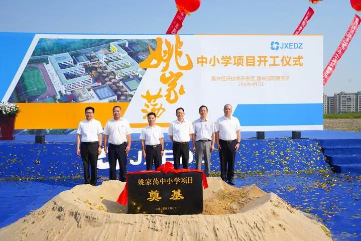 2020年9月7日,备受嘉兴市民关注的姚家荡中小学项目隆重举行开工仪式,各方参建单位领导及员工代表出席。公司副总裁陈国平、建筑分公司总经理沈飞参加了开工仪式。